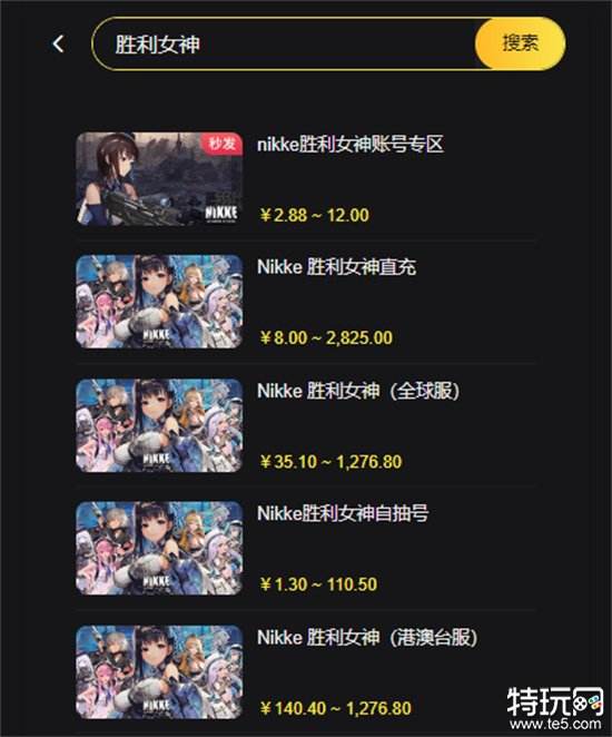 第三步:根据搜索结果选择要充值的游戏和区服,点击进入充值页面。(这里以胜利女神为例,不同游戏大家可以自行搜索)